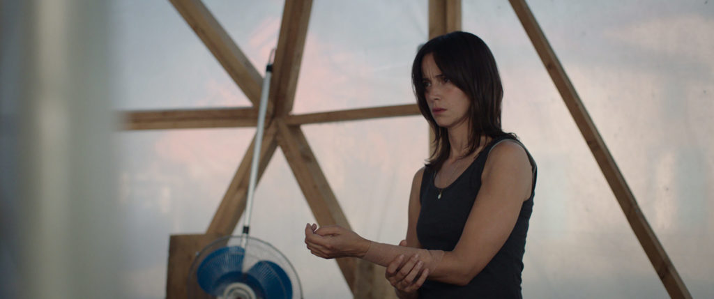 C’est finalement un sujet terriblement ancré dans le réel que nous propose Just Philippot. Une ferme en faillite, gérée par une veuve mère de famille qui essaie tant bien que mal de joindre les deux bouts. Virginie Hebrard fait tout ce qu’elle peut pour protéger l’innocence de son petit dernier, et maintenir le lien avec sa fille adolescente puisque chacun gère le décès du père à sa façon. Ce drame en toile de fond est aussi le signal d’un malaise plus profond, celui d’une filière qui peine à finir les mois : les agriculteurs. Face à cela, Virginie se lance dans une production de niche : la sauterelle, sous toutes ses formes. Succès ? pas vraiment. Après un accident, tout va changer et Virginie va peu à peu traiter les insectes comme ses enfants, tout en délaissant son entourage…